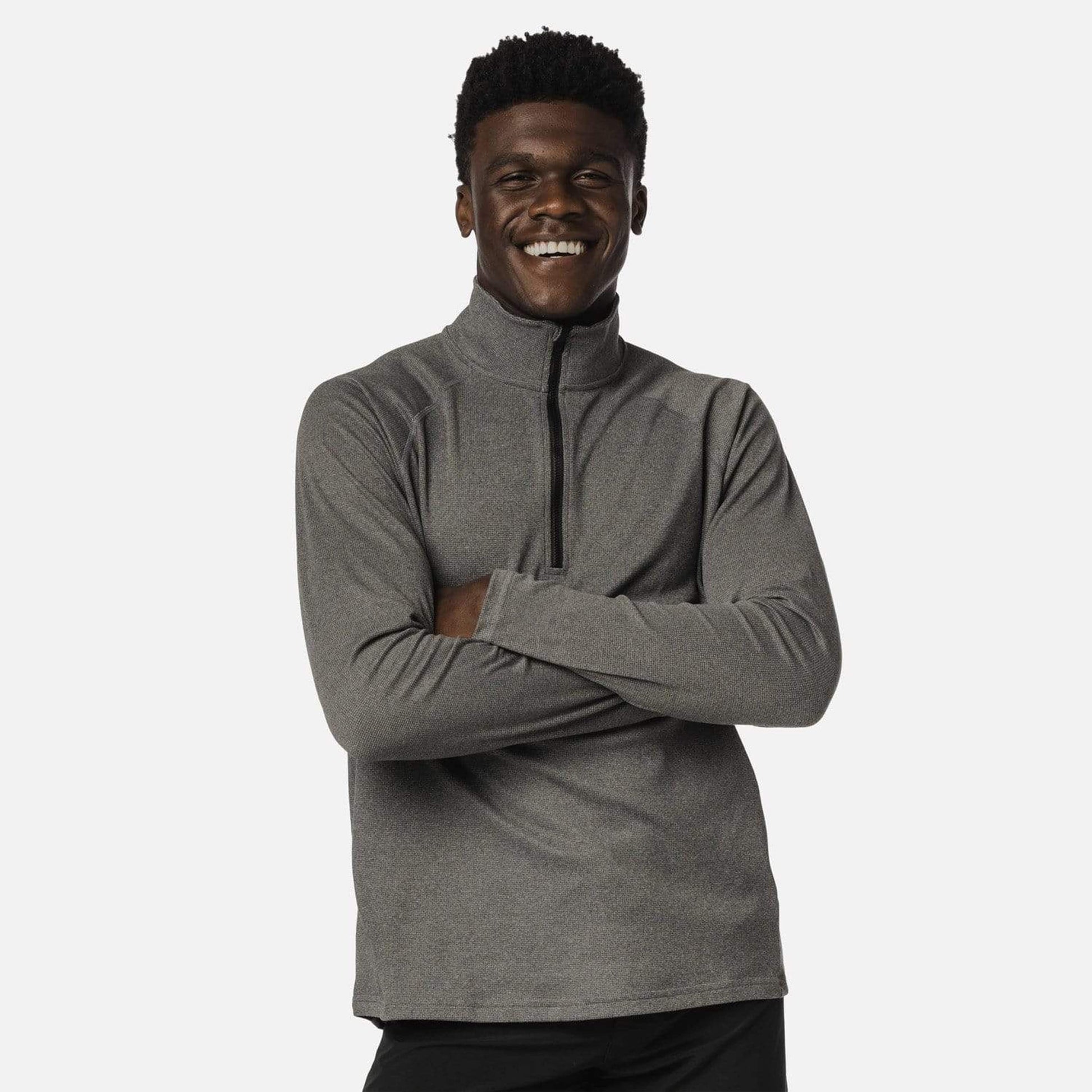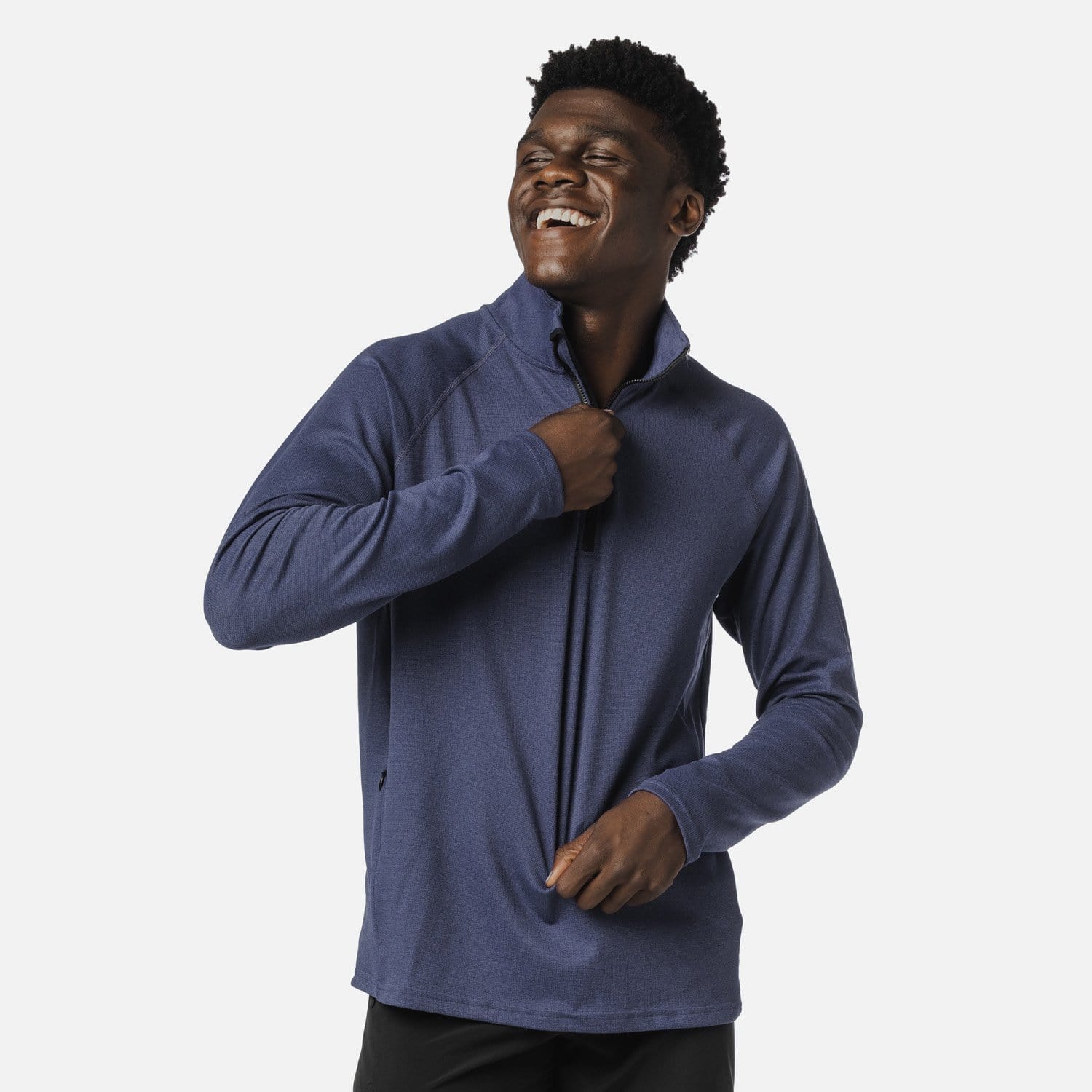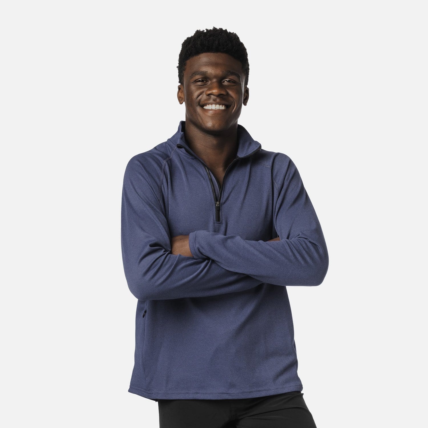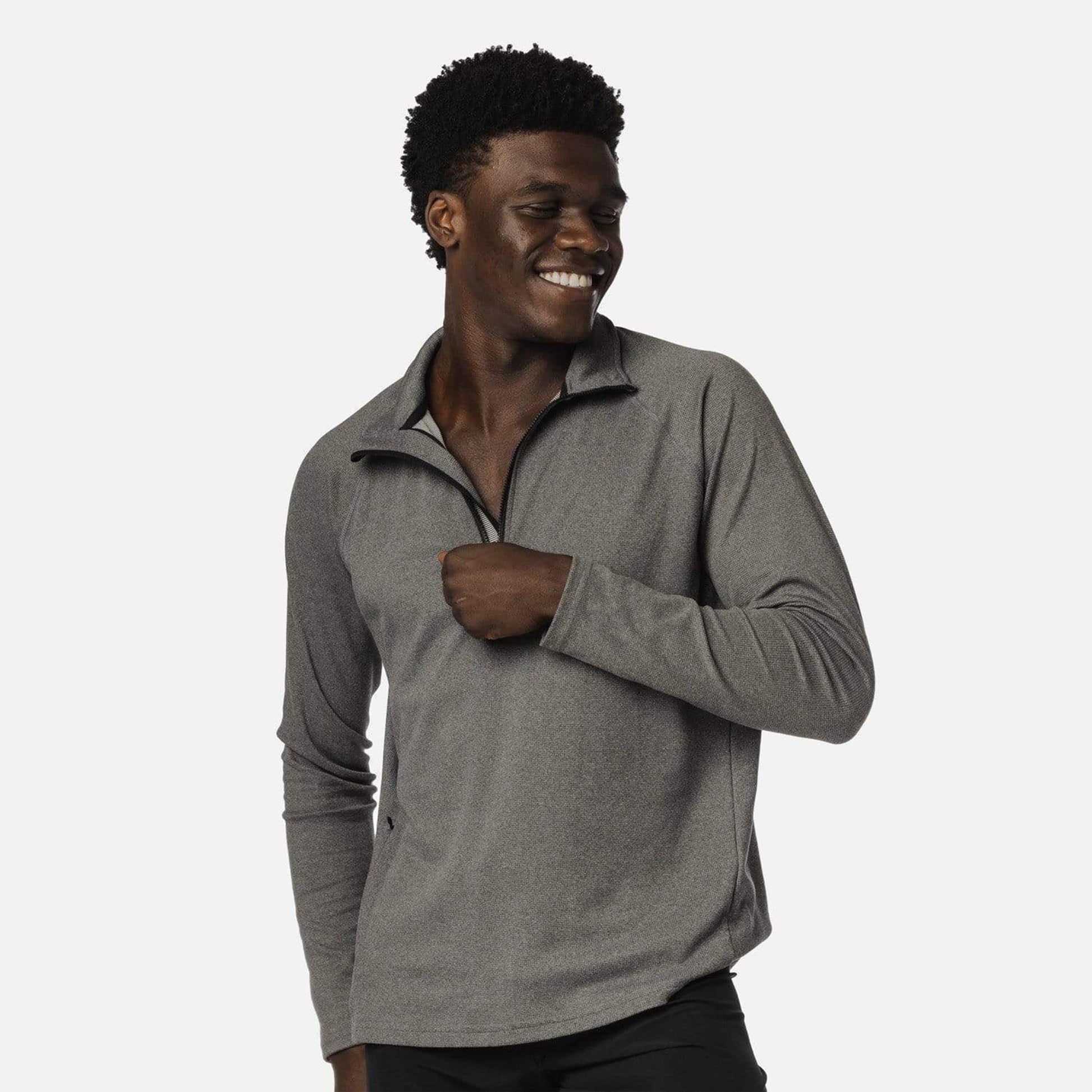 - Quarter-zip. Zippered pocket on the right side.