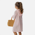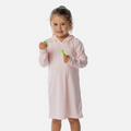 - Pull-on with full coverage hood. Dress length varies, depending on the wearer, but generally hits below the knee.