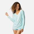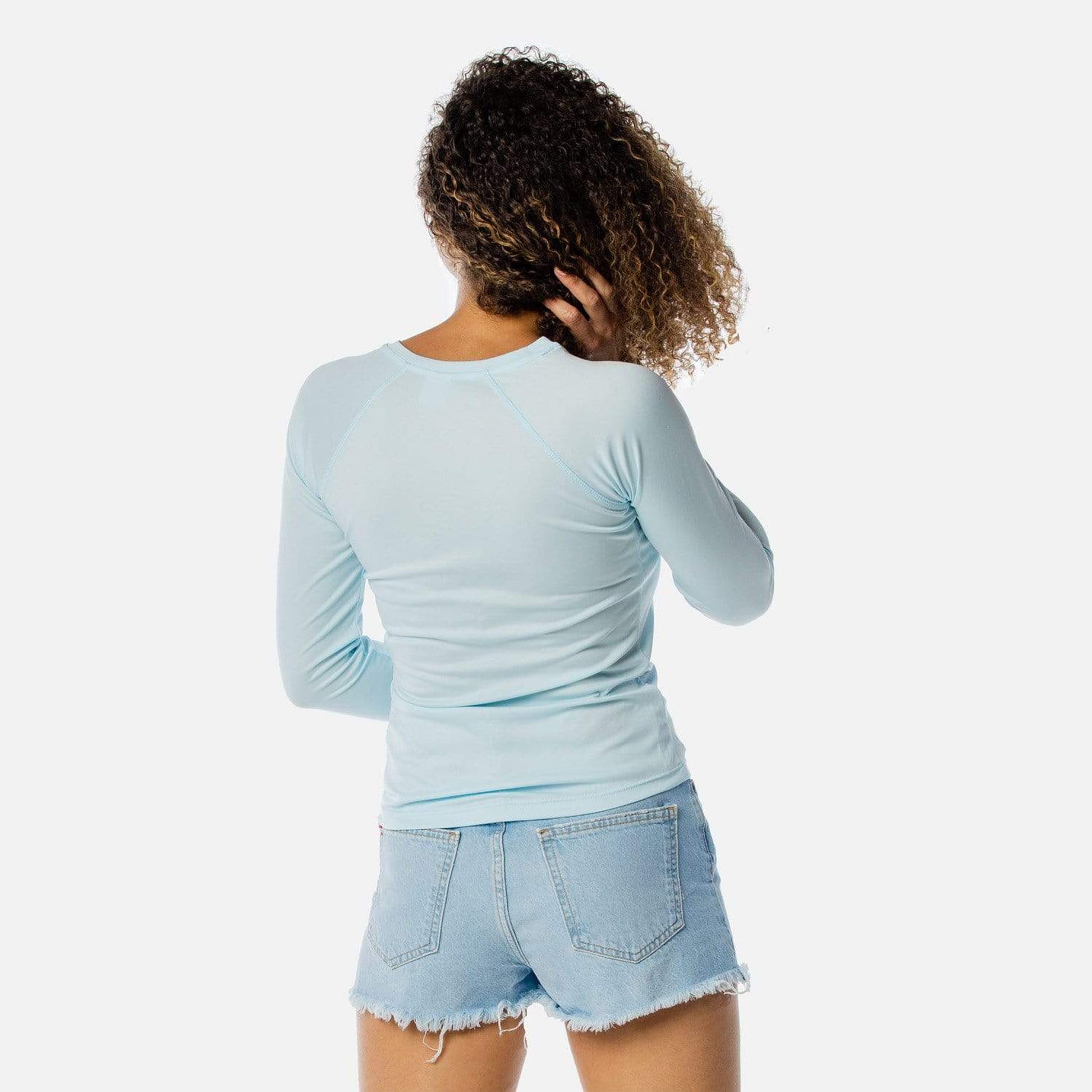 - V-neck. Fits true-to-size. Raglan sleeves with tapered wrists.